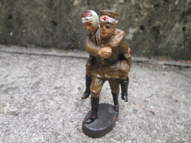 ELASTOLIN Soldier with wounded soldier. Soldaat draagt gewonde soldaat van het veld, goede staat.