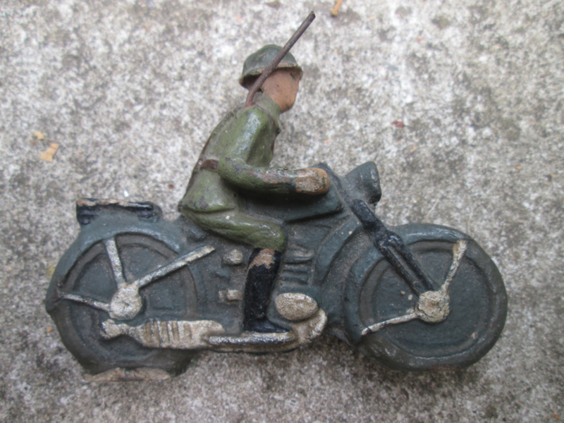 Unmarked soldier on motor. Soldaat op motor merkloos.