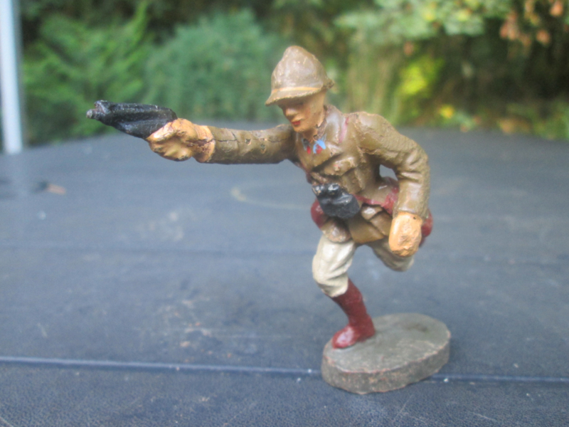 ELASTOLIN Belgium soldier walking with a pistol. Belgische soldaat rennend met pistool.