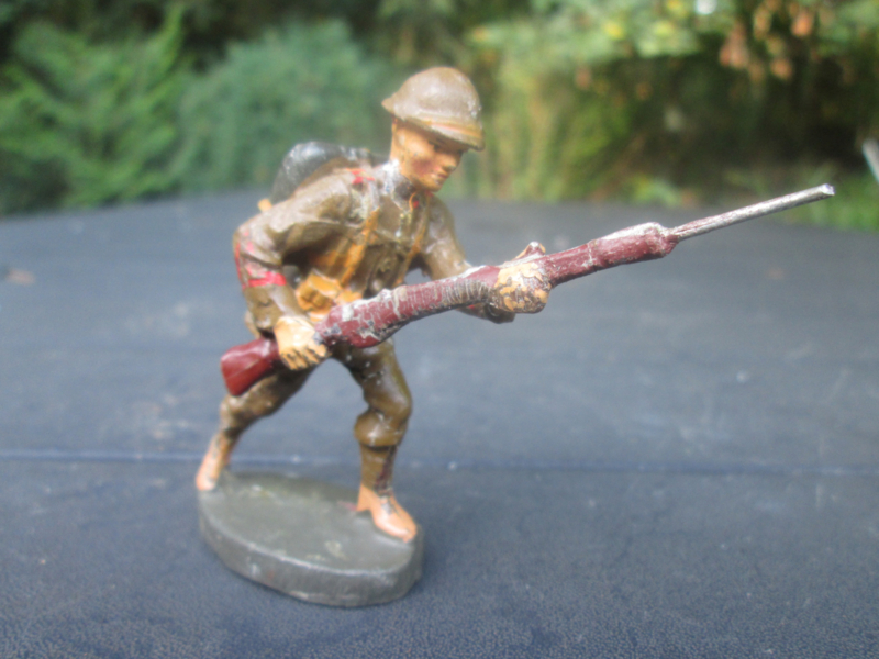 ELASTOLIN Belgium soldier attacking. Belgische soldaat in de aanval.