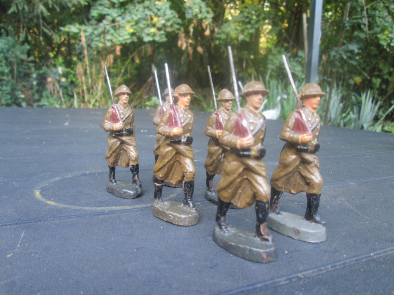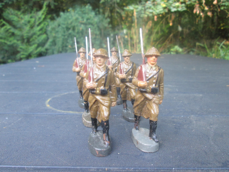 ELASTOLIN 6 marching Belgium soldiers, 6 marcherende Belgische soldaten. goede staat