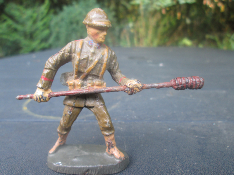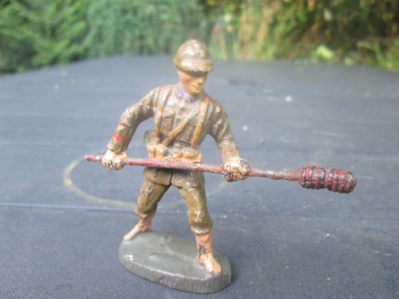 ELASTOLIN Belgium soldier Artillery, Belgische soldaat met poetsstok voor kanon loop of stamper voor de kogel.