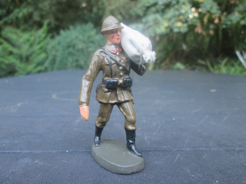 ELASTOLIN Belgium soldier carrying a sac. Belgische soldaat die een zak draagt, goede staat