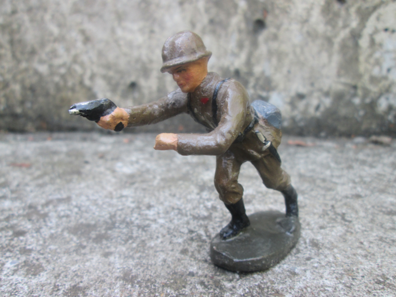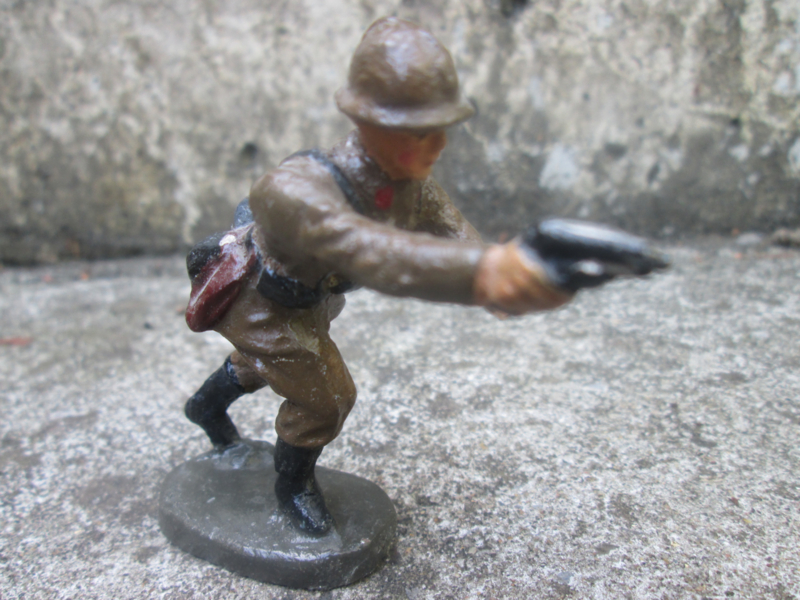 ELASTOLIN Belgium soldaat attacking with revolver. Belgische soldaat in de aanval met pistool.