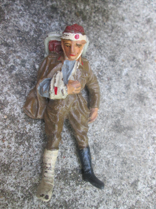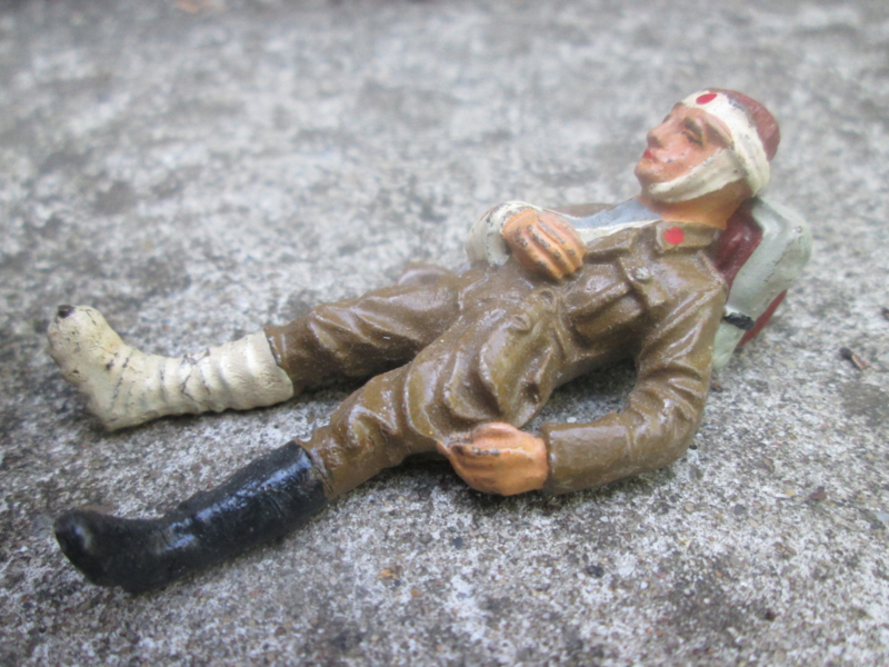ELASTOLIN Wounded Belgium soldier, Gewonde Belgische soldaat TOP stuk zeldzaam.
