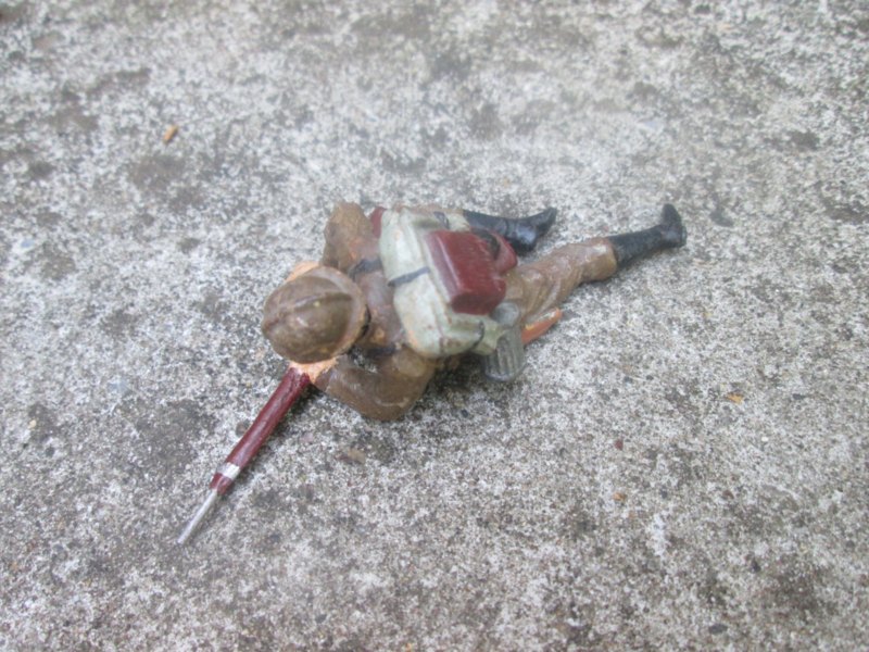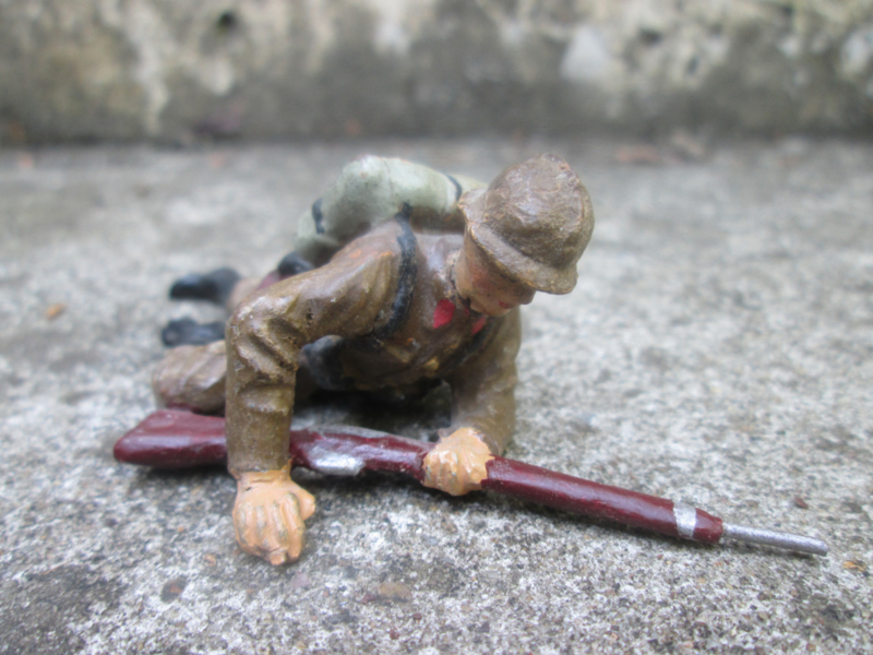 ELASTOLIN Belgium soldier crawling. Belgische soldaat kruipt met volle bepakking, leuk object. mooi model.