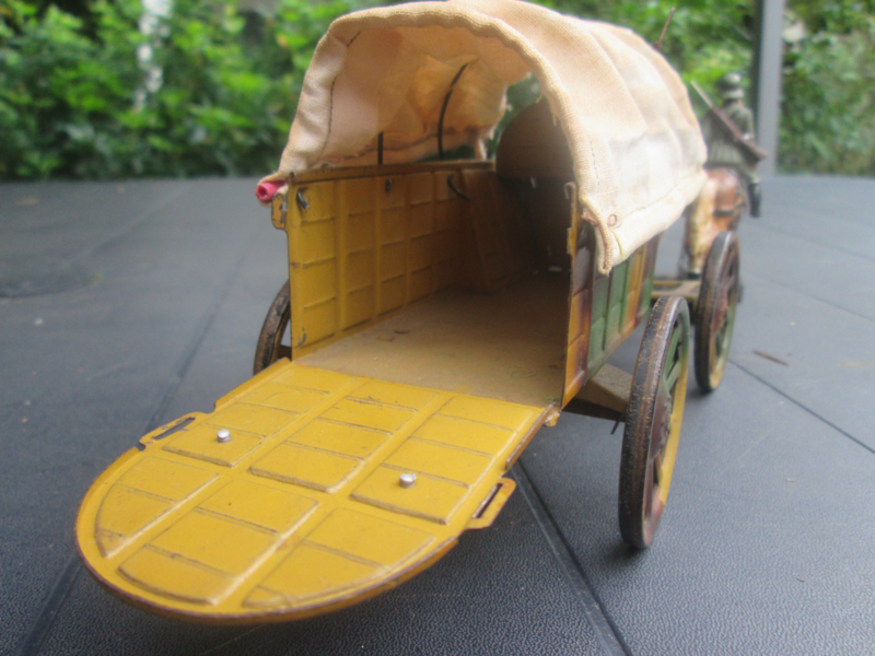 Tippco tin wagon with 2 horses and German soldiers. Blikken huifkar met paarden en 2 Duitse soldaten.