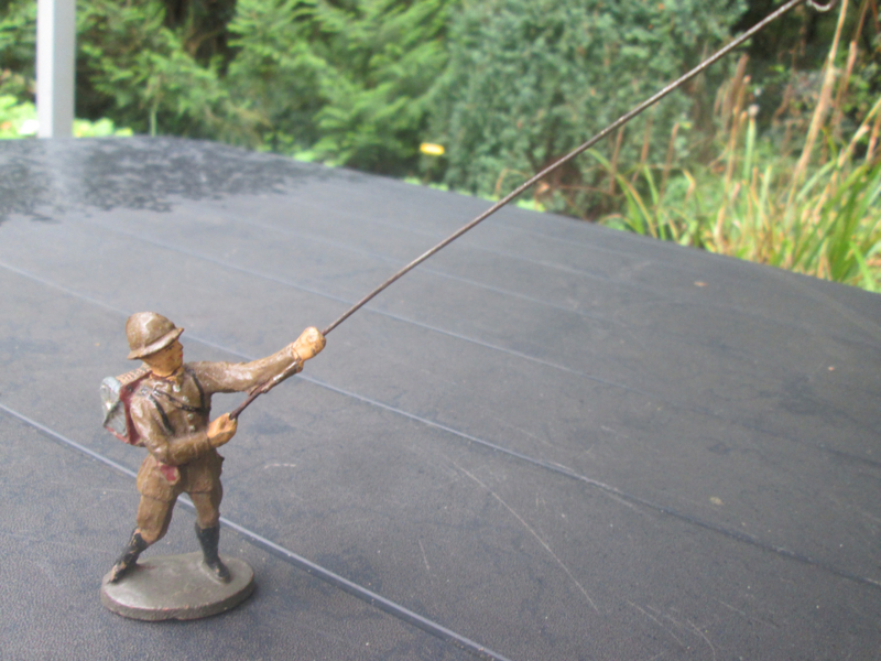 ELASTOLIN Belgium soldier. Belgische soldaat met verbindingshaak om lijnen te plaatsen bijzonder stuk goede staat.