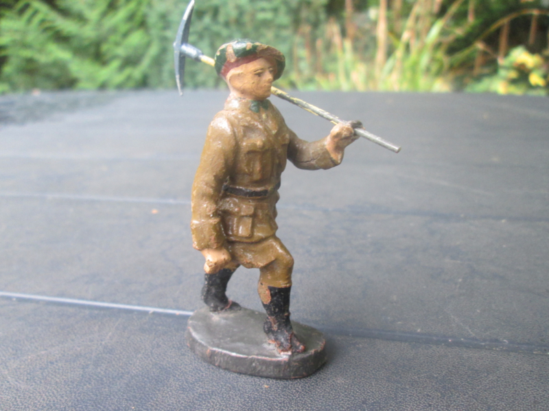 ELASTOLIN Belgium soldier chasseur Ardenne. Belgische soldaat Ardense jager met pikhouweel.