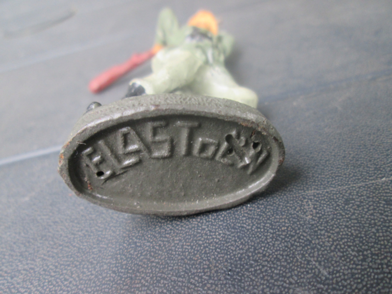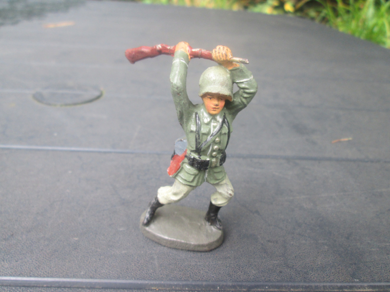 ELASTOLIN German soldier attacking with rifle. Duitse soldaat slaat met geweer.