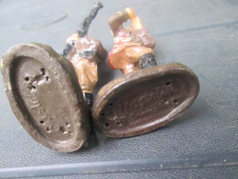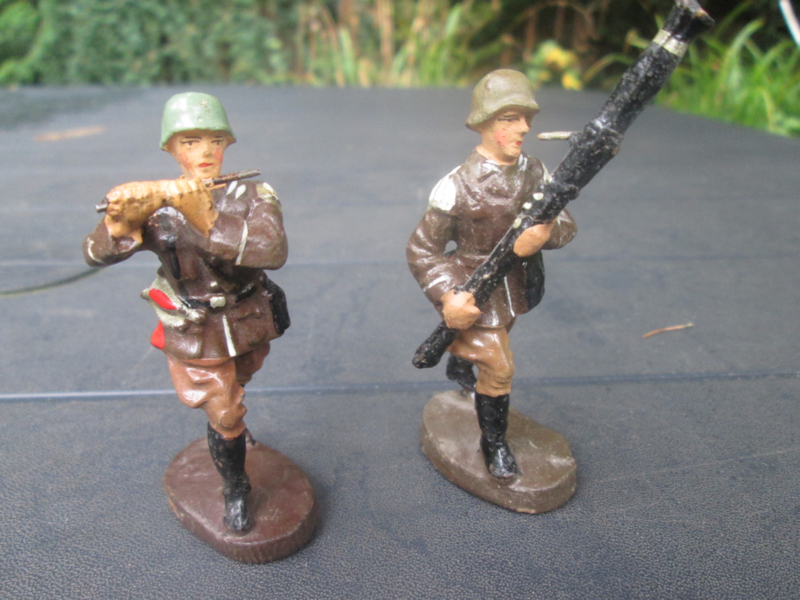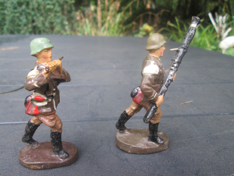 ELASTOLIN 2 german soldier making music. 2 Duitse soldaten van orkest leuk is de hobo speler, zie je niet vaak.