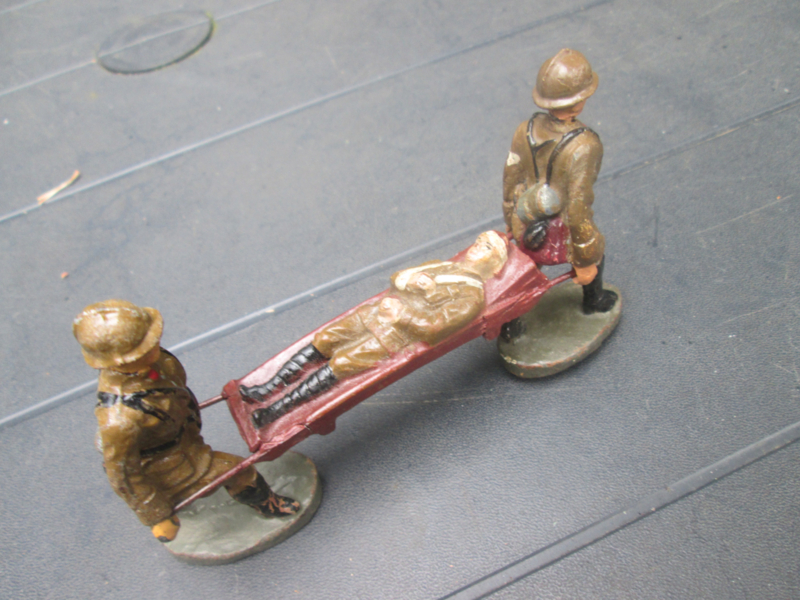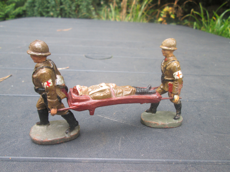 ELASTOLIN Belgium red cross soldiers with brancard. Belgische Rode Kruis soldaten met gewonde soldaat.