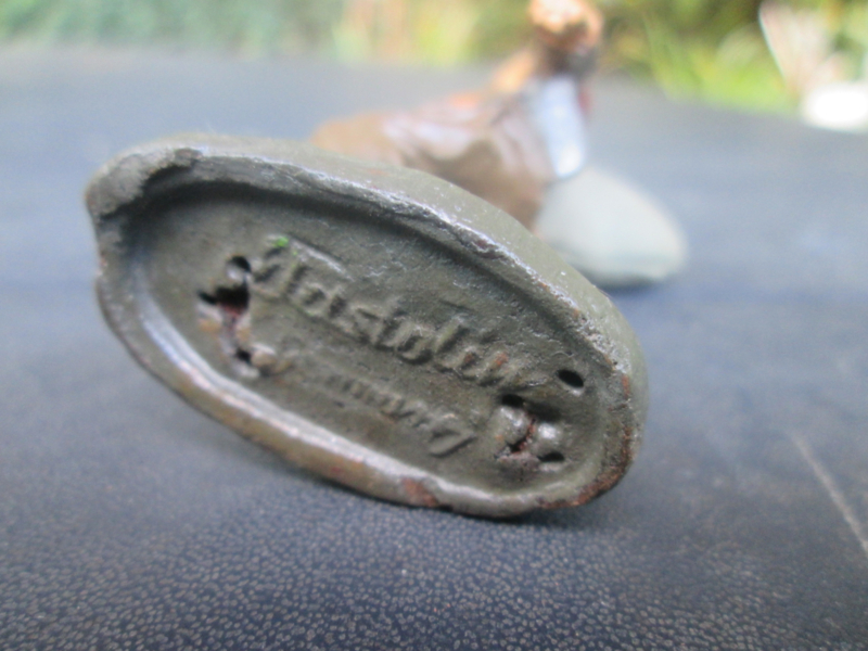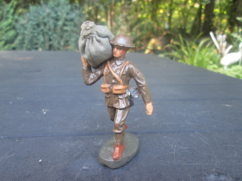 ELASTOLIN British soldier with bag. Engelse soldaat draagt jute zak. goede staat.
