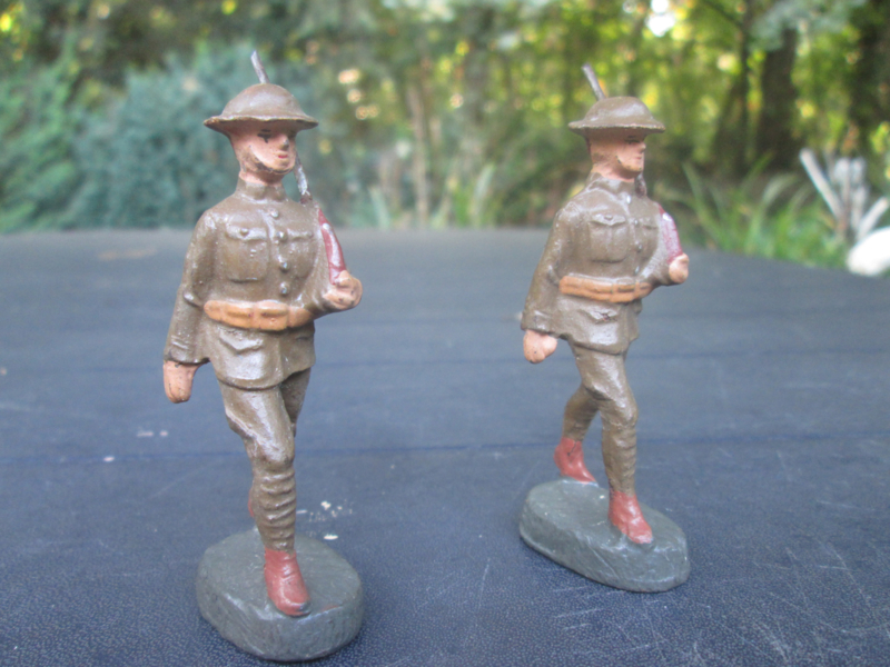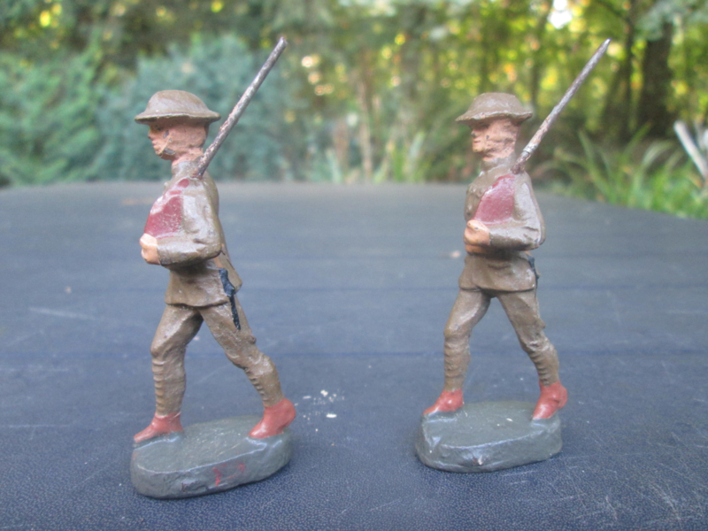 ELASTOLIN 2 British marching soldiers, 2 marcherende Engelse soldaten geen rugzak