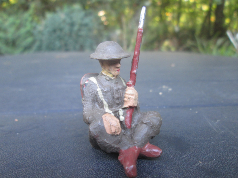 ELASTOLIN British soldier sitting. zittende Engelse soldaat mint staat.