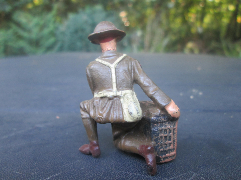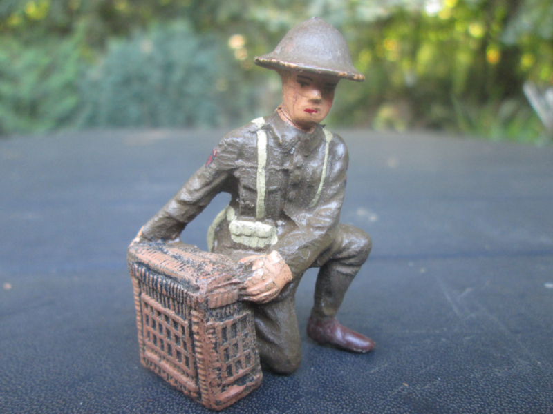 ELASTOLIN British soldier signal corps with pigeons. Engelse soldaat met duiven kooi. leuke staat.
