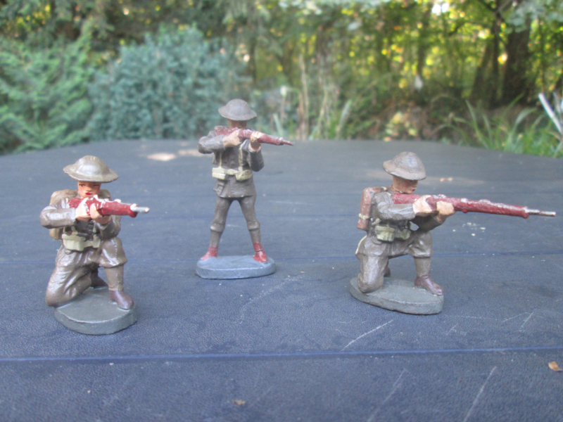 ELASTOLIN 3 shooting british soldiers. 3 schietende Engelse soldaten goede staat.