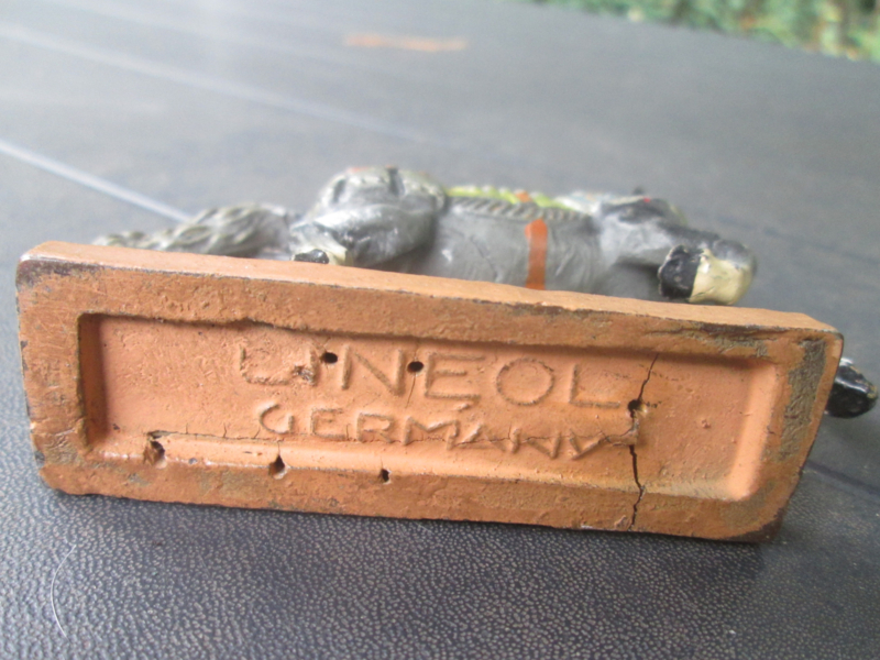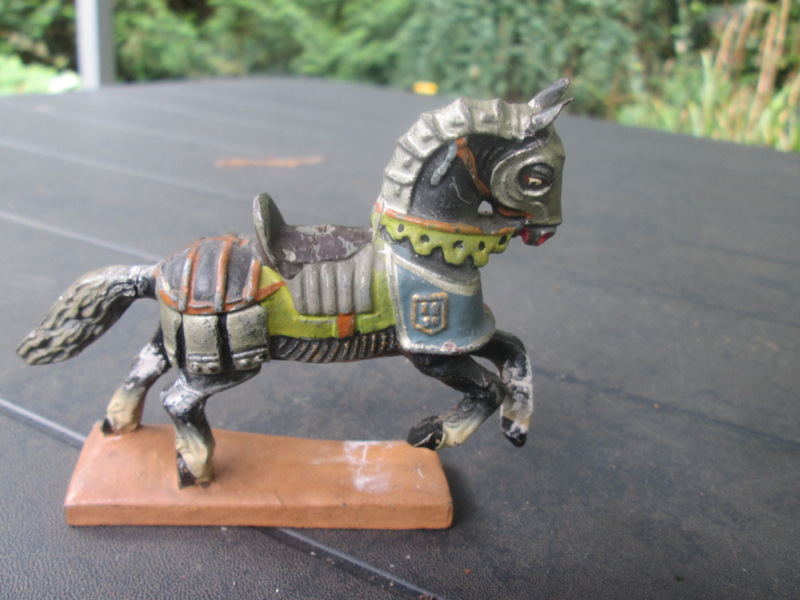 LINEOL Knight horse with armour, playrd condition, ridder paard met bescherming bespeeld.