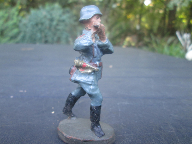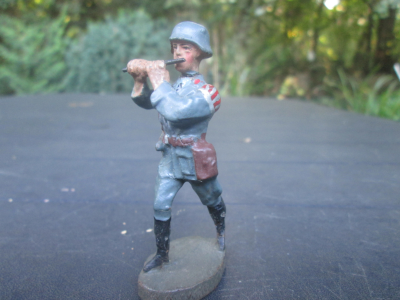 ELASTOLIN German luftwaffe soldier with instrument. Duitse luchtmacht soldaat met dwarsfluit, goede staat.