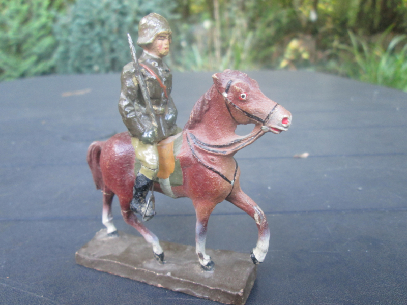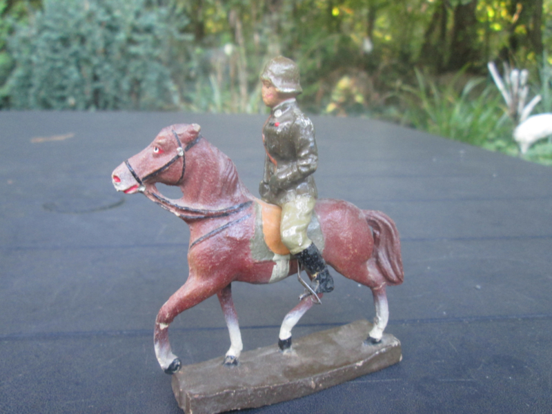 ELASTOLIN German soldier officer on horse. Duitse wehrmacht officier metalen stijgbeugel. leuke set
