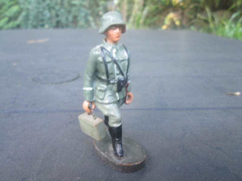 ELASTOLIN German soldier. Duitse soldaat met koffer.