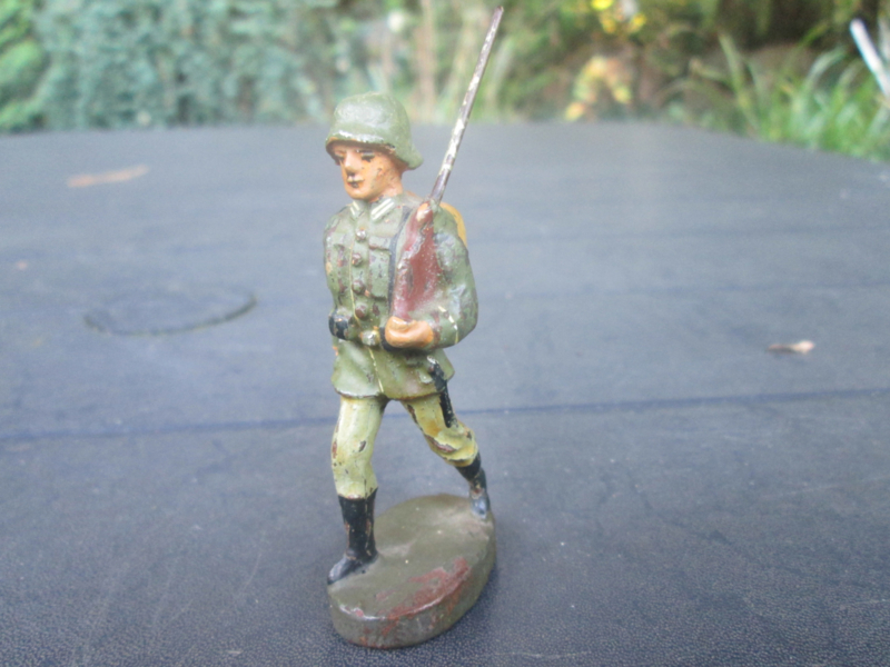ELASTOLIN German marching soldier nice quality. Duitse soldaat die marcheert, goede staat.