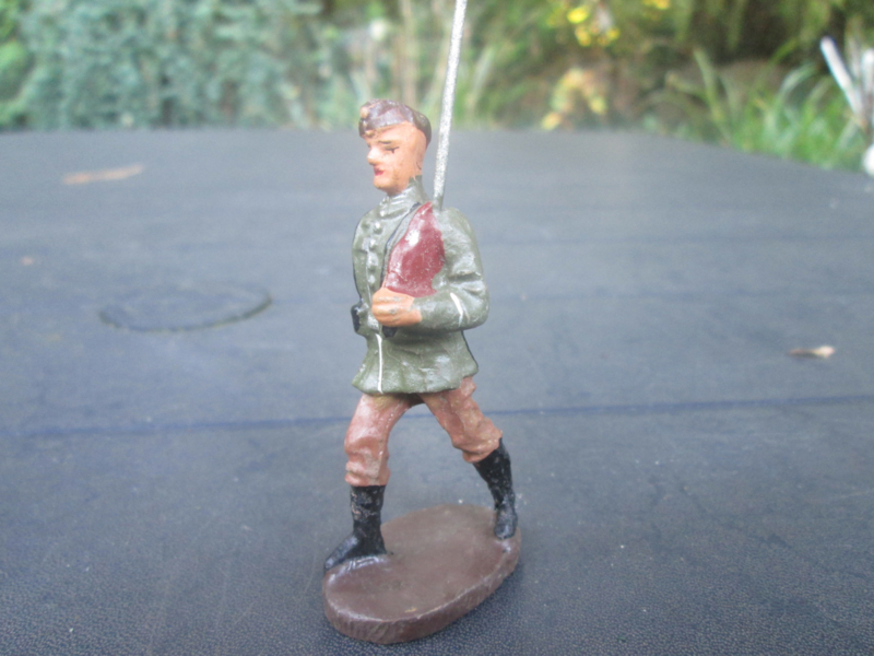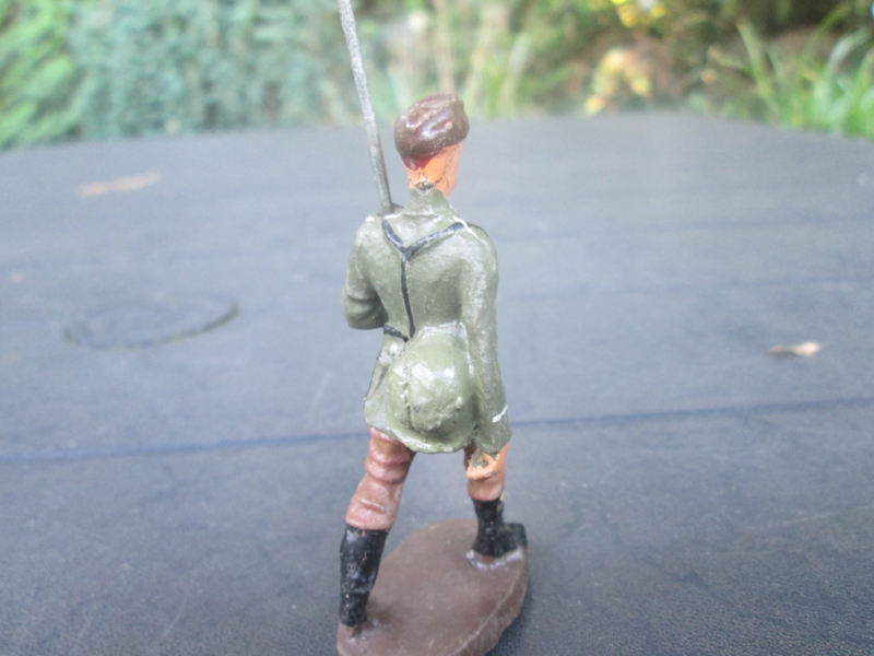 ELASTOLIN German marching soldier. Duitse marcherende soldaat met helm op de rug. goede staat