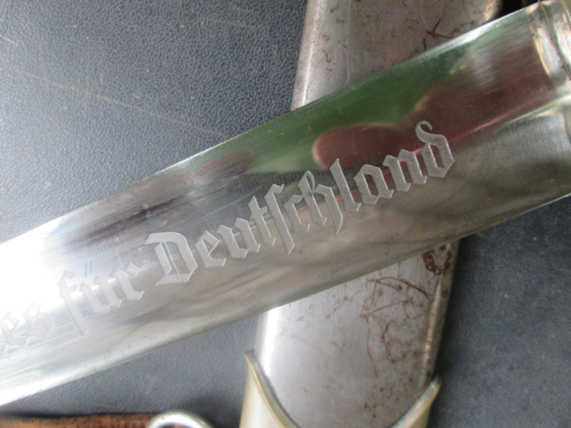 German SA dagger M33. maker is Clemen and Jung Solingen. Very rare maker just 3000 made. Duitse SA M33 dolk met inscriptie Alles Fur Deutschland, zeldzame maker 3000 stuks gemaakt. HO - Hochland.
