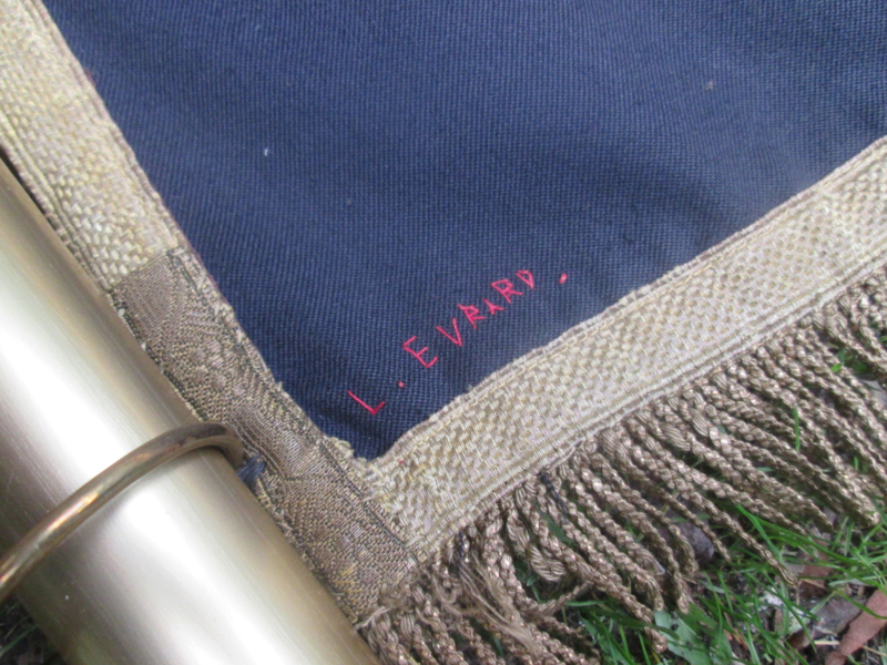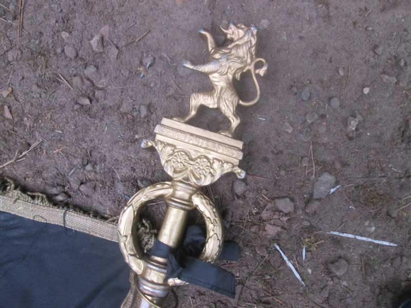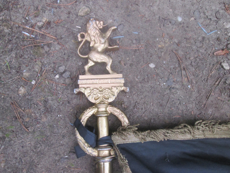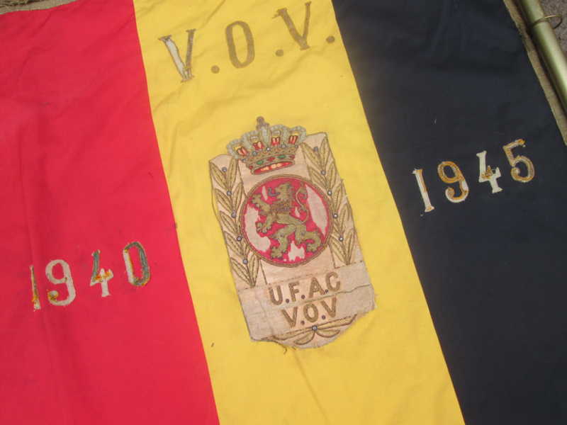 GERESERVEERD Belgium vetrans flag. with flagpole. Belgische veteranen vlag Vereniging van Oudstrijders UFAC/ VOV. 1940/1945 met deelbare stok en vlaggentop decoratief stuk.