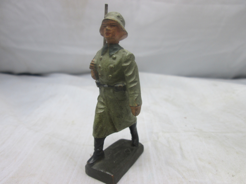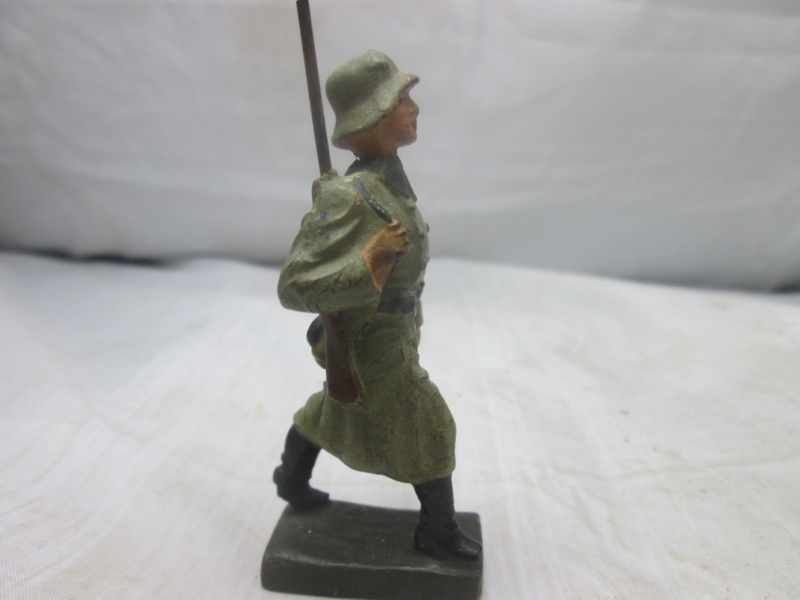 LINEOL German soldier walking in trench coat. Duits marcherende Duitse soldaat in lange jas.