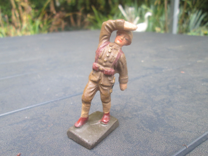 LINEOL Belgium soldier hit by a bullit smaler size. Belgische soldaat getroffen kleiner model goede staat.