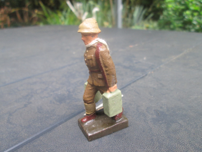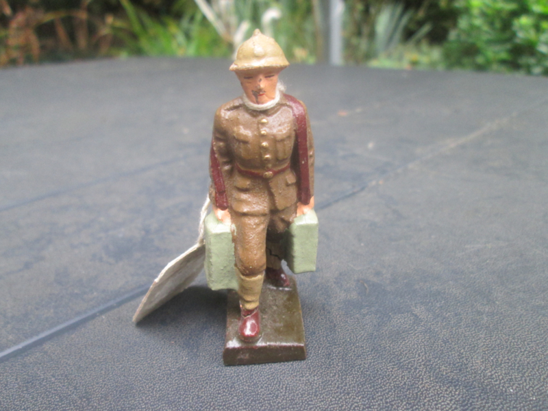 LINEOL Belgium soldier carrying amo boxes with original price tag. smaler size Belgische soldaat met oud prijskaartje klein model.