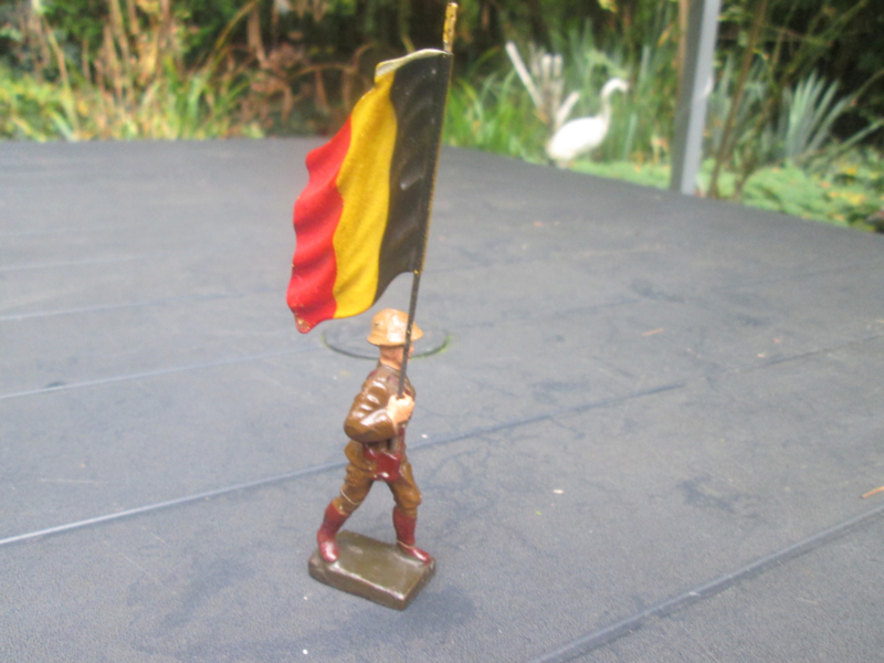 LINEOL Belgium soldier with flag smaler size. Belgische soldaat met vlag kleiner model.