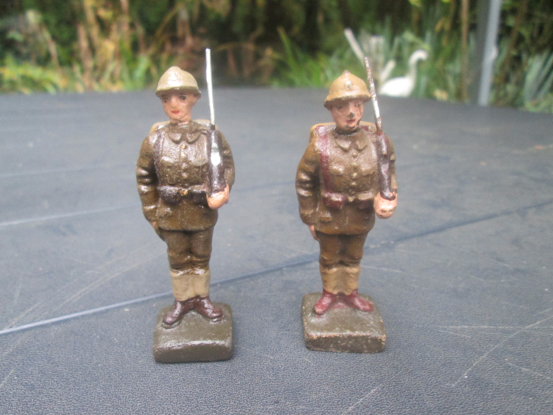 LINEOL 2 Belgium soldiers on guard smaler size. 2 Belgische soldaten op wacht. kleiner model.