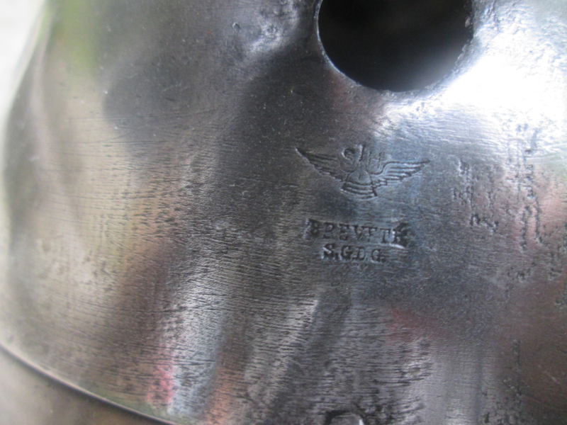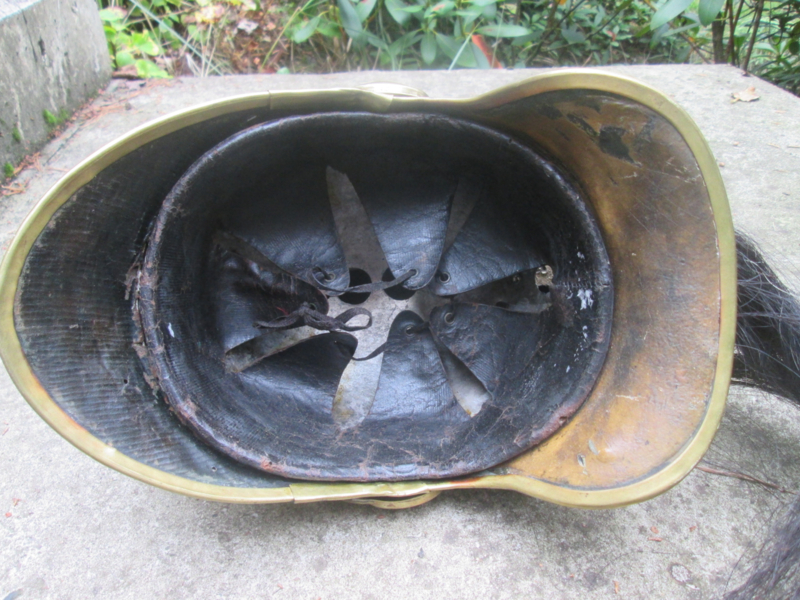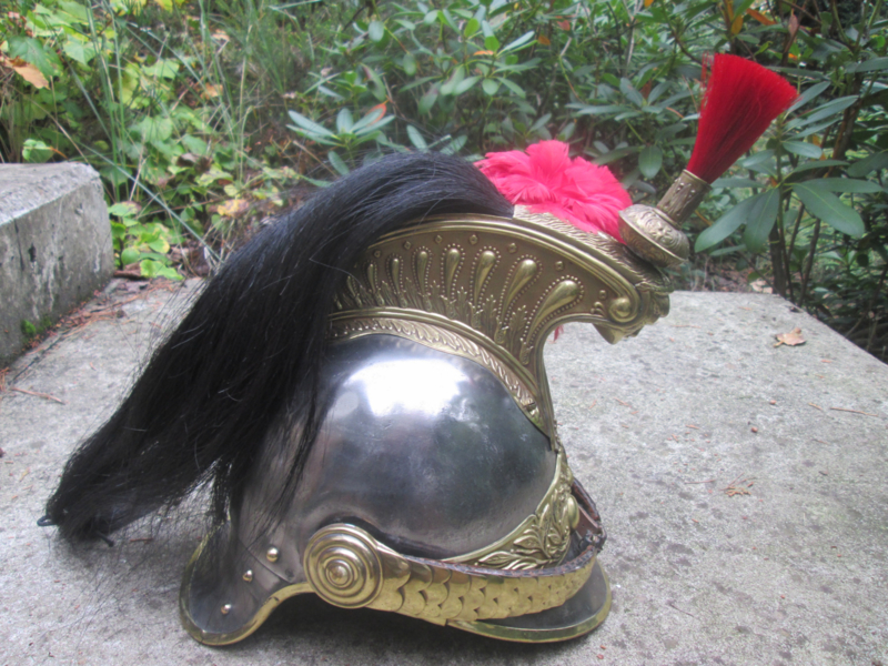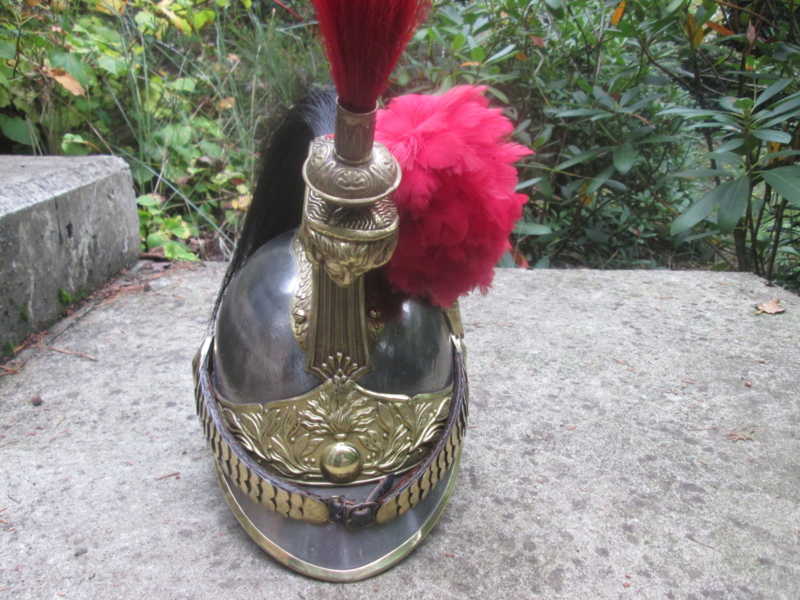 French M 1874 Cuirassier helmet NCO. complete with liner. Marked BREVETE , SGDG. Franse kurassiers helm ook gedragen in het begin van de oorlog 1914/1915, gebruikte doch goede staat.