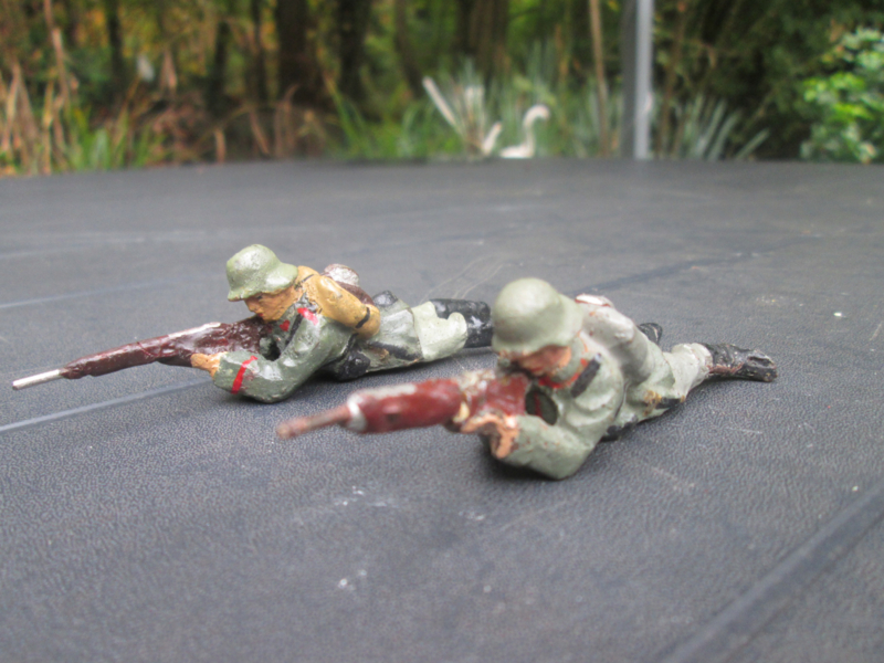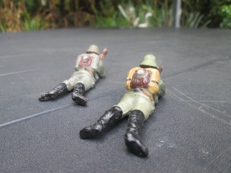 LINEOL 2 shooting german soldiers smaler size. 2 Duitse soldaten liggend schietend kleiner model goede staat.