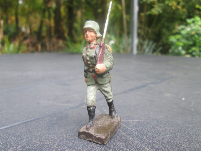 LINEOL Marching German soldier with backpack, smaler size. Marcherende Duitse soldaat met rugzak kleiner model goede staat.