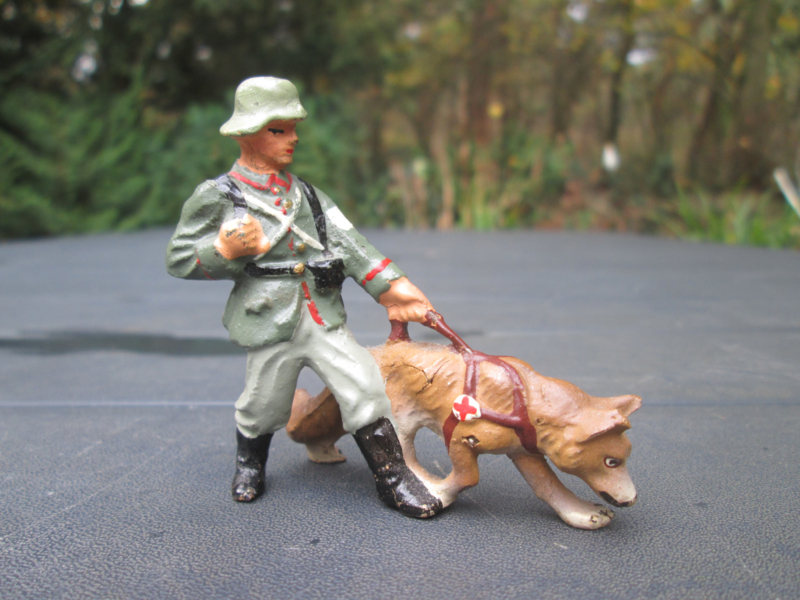LINEOL/ ELASTOLIN German soldier with Red cross dog. Duitse soldaat met Rode kruis hond MINT staat TOP stuk.