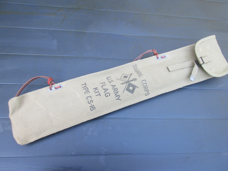 US Army flag kit Signal corps nicely marked and dated. Amerikaans vlaggenset in canvas hoes met 2 seinvlaggen.