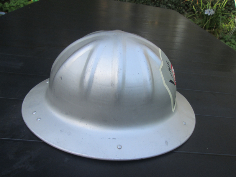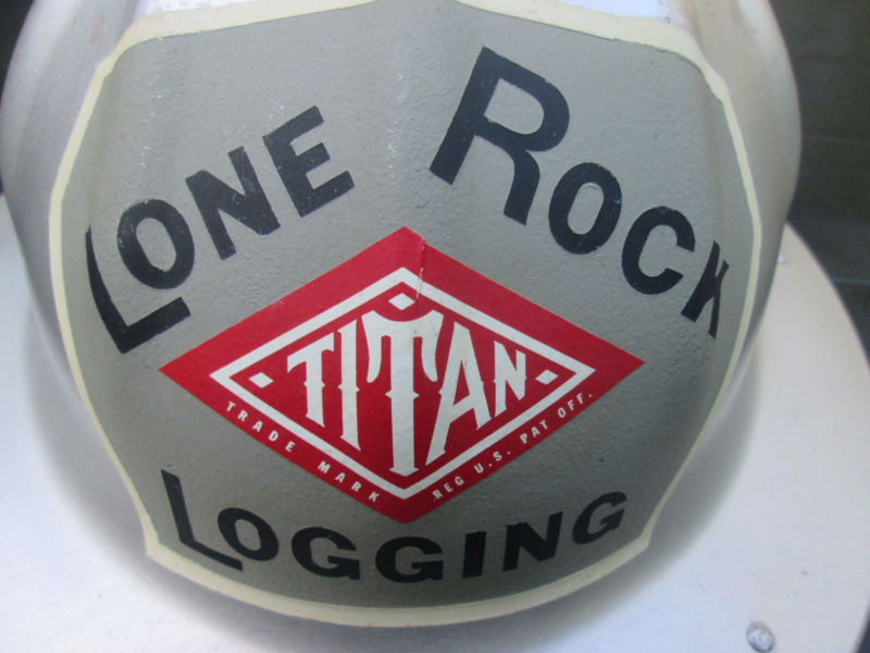 American safety helmet Lone Rock Logging TITAN. Amerikaanse veiligheidshelm typisch model dat in Amerika gedragen word, helm is van aluminium, decoratief stuk.