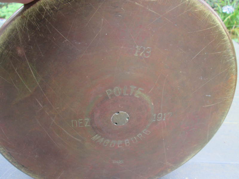 German cartouch cartridge. WW1 Duitse koperen huls mooi gemarkeerd Magdenburg 1917.