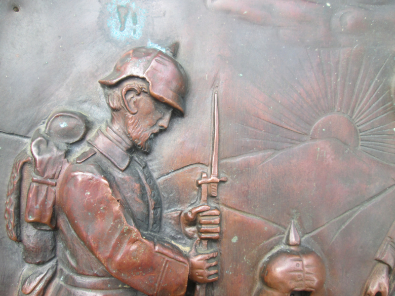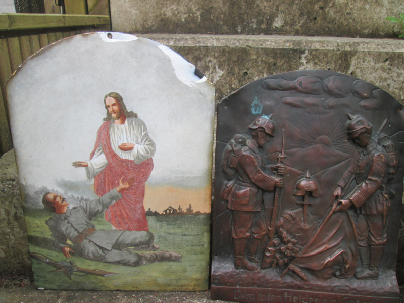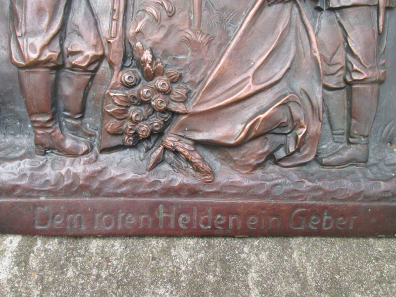 German memorial plaque. Duitse grafplaat van rood koper voor in een huis altaar ter herinnering aan de gesneuvelde. zeer nette plaat Dem Toten Helden ein Gebet. 25 bij 32 cm. leuke voorstelling TOP
