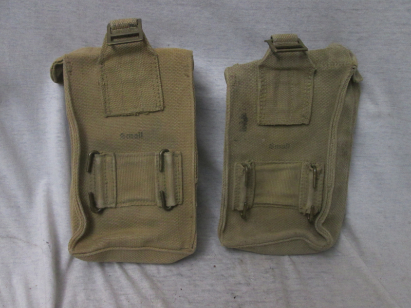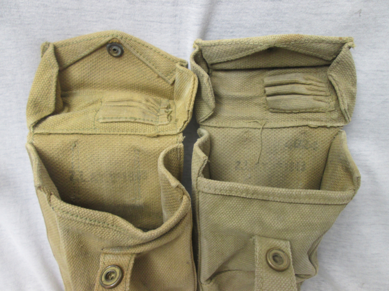British pattern 1937 basic webbing pouches, 1943 dated. Engelse canvas patroon tassen set 1943.