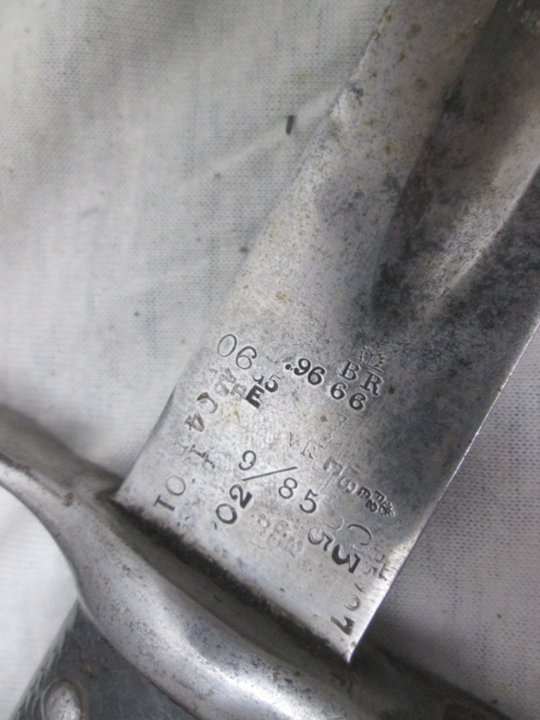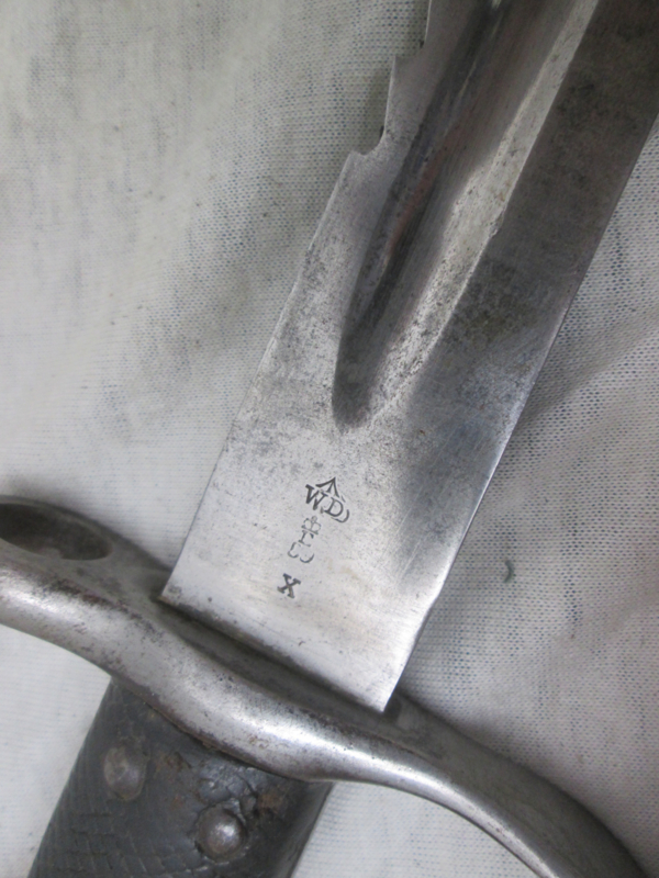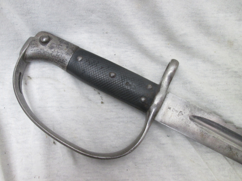 Martini Henry Pattern 1879 artillery saw back bayonet, impressive markings, without scabbard. Bajonet met zaagrug, zeer bijzonder stuk. mooi gemarkeerd.