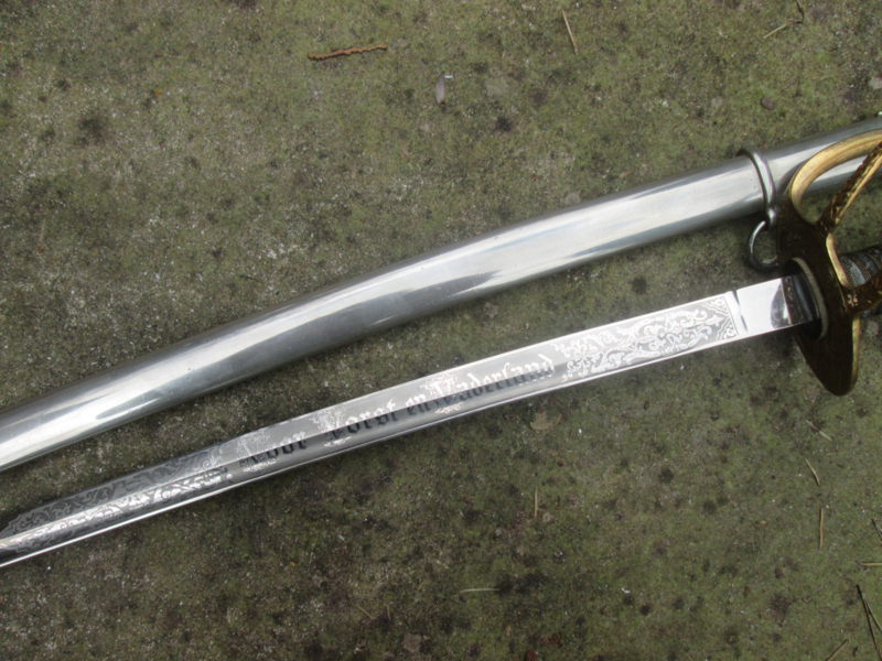 Belgium sword, nicely engraved. Belgisch sabel Voor Vorst en Vaderland, 2e Regiment Lansiers maker is E&F Hörster Solingen.