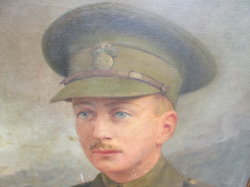 Painting British army officer WW1. medal bar with "Military Cross". painter "Mario Carvella"1902-1962 he was Olympic ski atlete and painter size ;90x 78 cm.